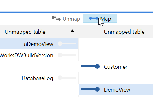 Once I have a source and target, I can map them in SQL Data Compare. First, I select both objects in the Tables and Views tab and then click Map.