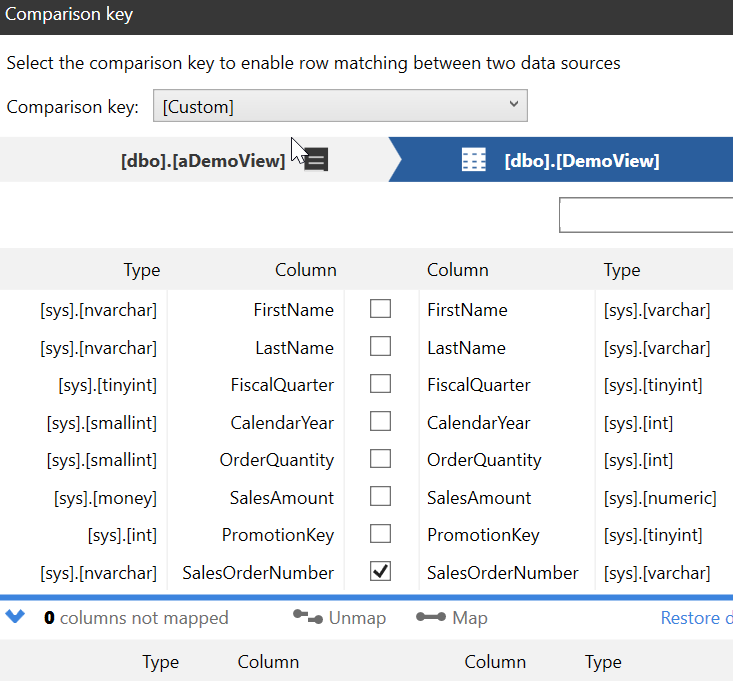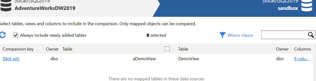 In this case I had a fairly specific set of data in the view with a WHERE clause. If I wanted to keep this more generic, I could always use the WHERE clause in SQL Data Compare to select a set of data to move here.