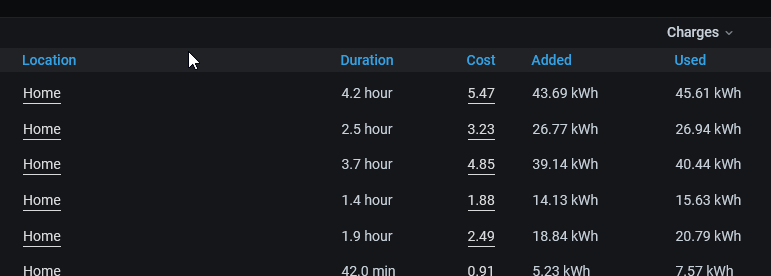Each of these has different sets of data available for me to view. For example, I can geofence my house, and then enter the cost of charging at home. This lets me see my charges: