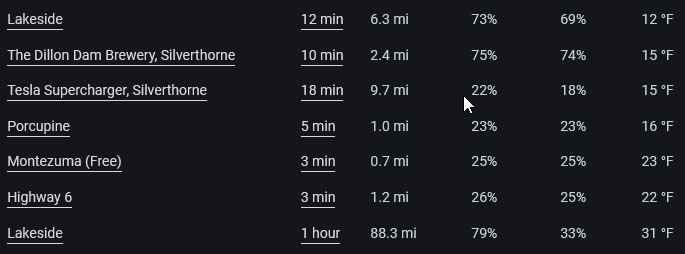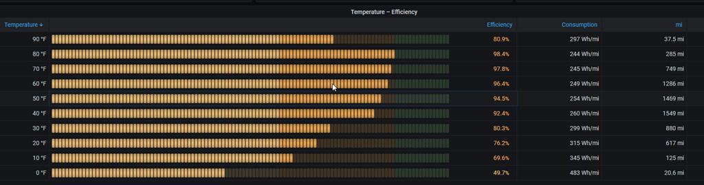 There’s a lot more data to analyze, and most of it I don’t care about, but I do like to see how much power I’m using on average and where I’m going often. It’s not that helpful, but it is interesting. One thing I could have guessed is how temperature affects things, but living in Denver, the most efficient times are the majority of the weather here.