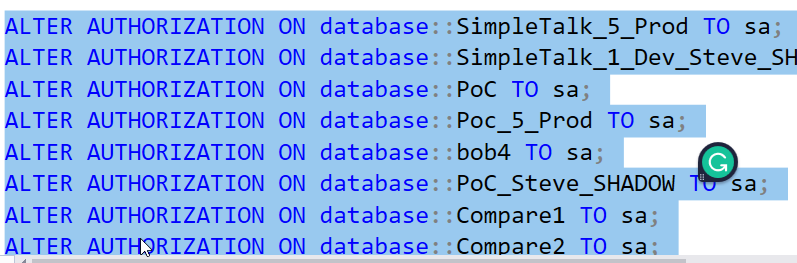 There used to be a dbo.sp_changedbowner proc that was used, but I know this is deprecated and it shouldn’t be used. It likely would work fine in SQL Server 2019, but I also know there should be more modern code. I decided to look, as I ought to know what is recommended these days.
