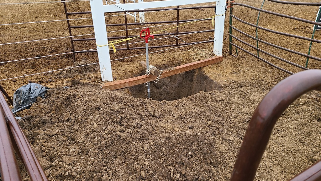 My two sons and I went out and did most of the work. Not enough, as the plumber had 3-4 hours of digging to do still, but we saved likely $700-800 in doing some of the work. Here’s us about halfway into our work. We were deep, but had to widen it quite a bit.