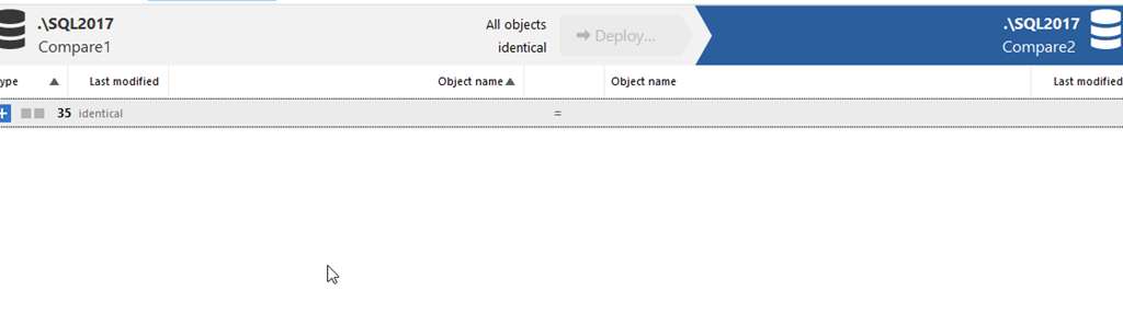 I don’t have that checked, and when I look at my comparison, I see this. There are two synonyms in these database, which you can see in the image, point to different targets.