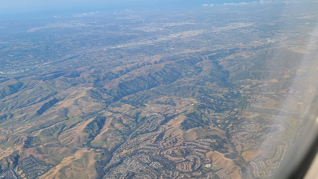 The view coming into LA, the land giving way to man made structures.