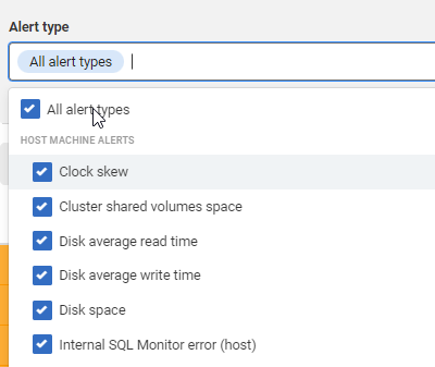 One of the newer filtering options is that I can click the dropdown at the top of the screen for Alert Type and then limit what I see. The default is all alert types.