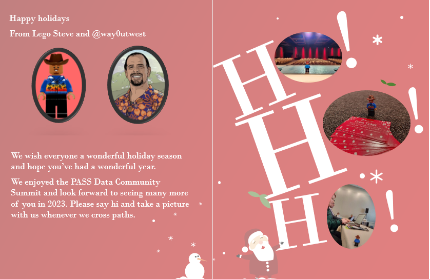 A fun one for me today. I saw this just after returning from the PASS Data Community Summit. Since I had some fun with pictures, I decided to make a themed card: using Lego Steve.