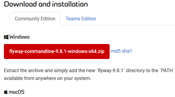 Flyway Community works on many platforms. I’ll choose Windows below.