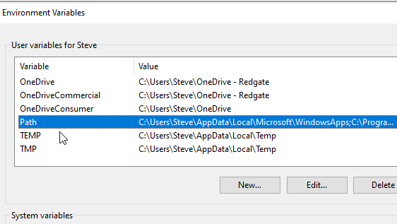 You then need to add this to your PATH. If you are on Windows 10 or 11, then in the Control Panel (Windows+I), search for environment. Edit the variables for your account.