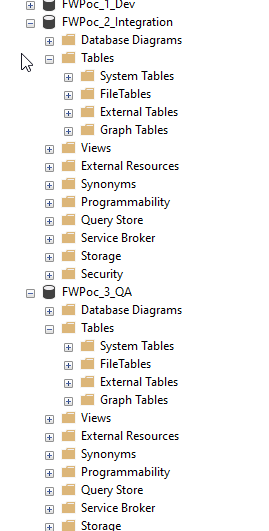 My development database for SQL Server looks like this: