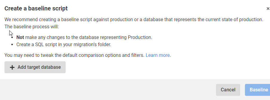 In this case, I don’t need a baseline script, because I want this table to deploy to the downstream databases.