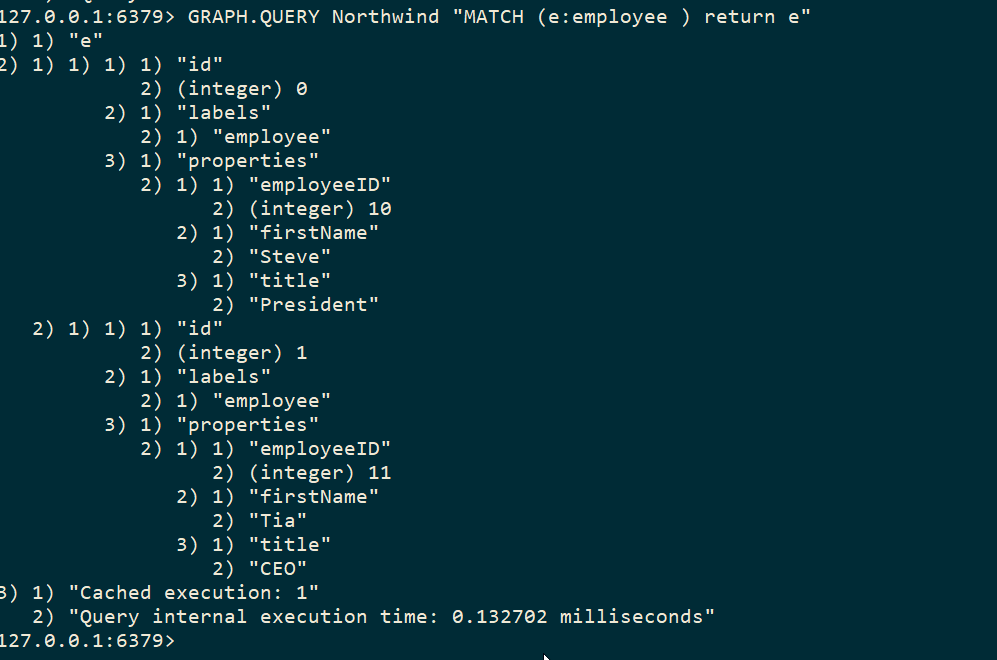 GRAPH.QUERY Northwind "MATCH (e:employee ) return e"