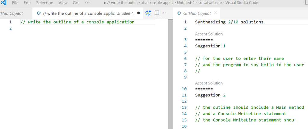 I saw a note in our internal Redgate Slack that all developers were given access to Github Copilot. This is something you can subscribe to for about US$10/month, or if you are a student, you can get it for free. In my case, I filed a ticket: