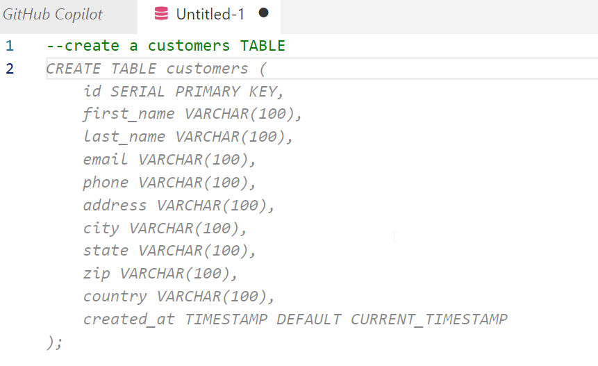 A start, but not quite right. I do have to keep hitting enter to get the query written. A couple more Enters and Tabs to accept code get me this: