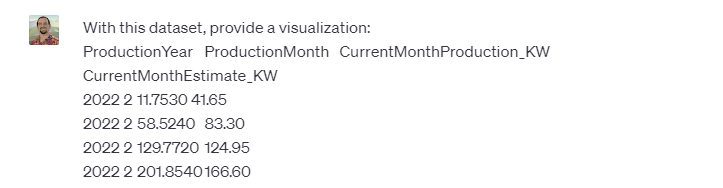 One of Tomaz’ ideas was a visualization. I have some data, so I used this prompt: