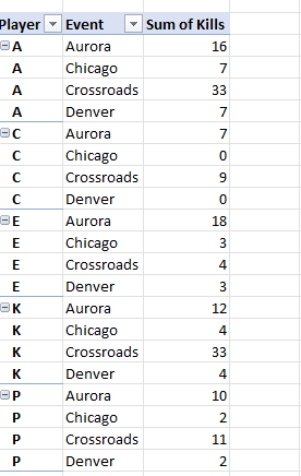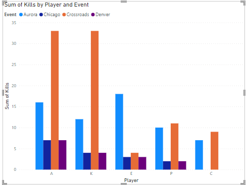 My data set was simple, a few players across a few events and their number of kills. I coach volleyball and I’m always trying to present stats in a useful way. Here was the small set I picked.