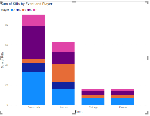 I switched to a normal stacked chart, which is OK, but for Crossroads, is A or K better? Does E outperform A in Aurora? Very hard to tell.