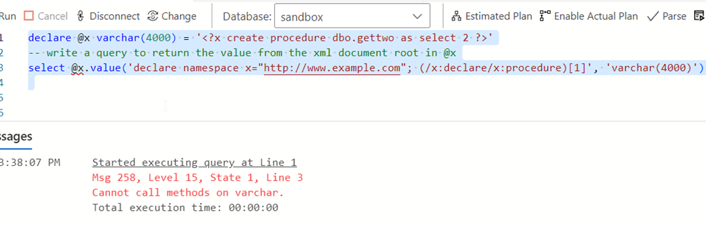 If I cast this as XML, or declare it, things work. At least, they don’t produce errors. But they don’t do what I wanted.