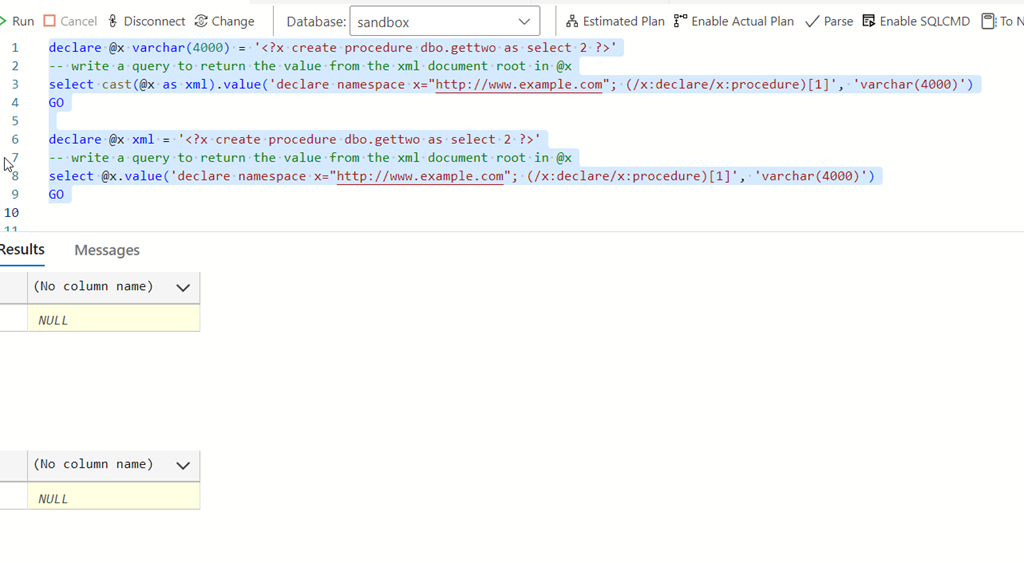 I sent some code to a customer recently to help them decrypt some stored procedures. I sent a quick and dirty set of code, noting at the bottom that the results were in XML and needed to be extracted.