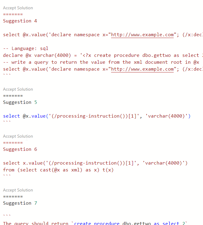 Suggestion three looks like a copy paste from a forum somewhere. However, the code works. I don’t know how this gets into the suggestions, but I am interested to know what’s happening here.