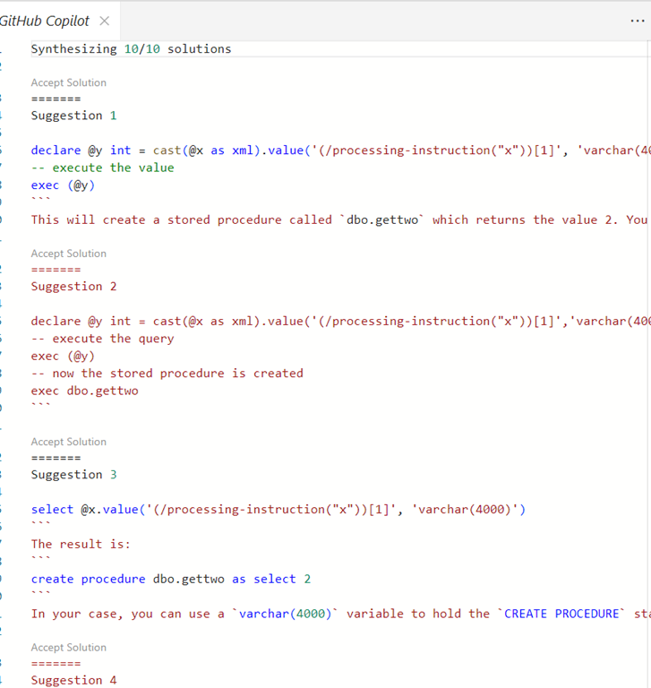 I wasn’t sure what to do, so I opened the completions panel for Copilot and saw other suggestions.