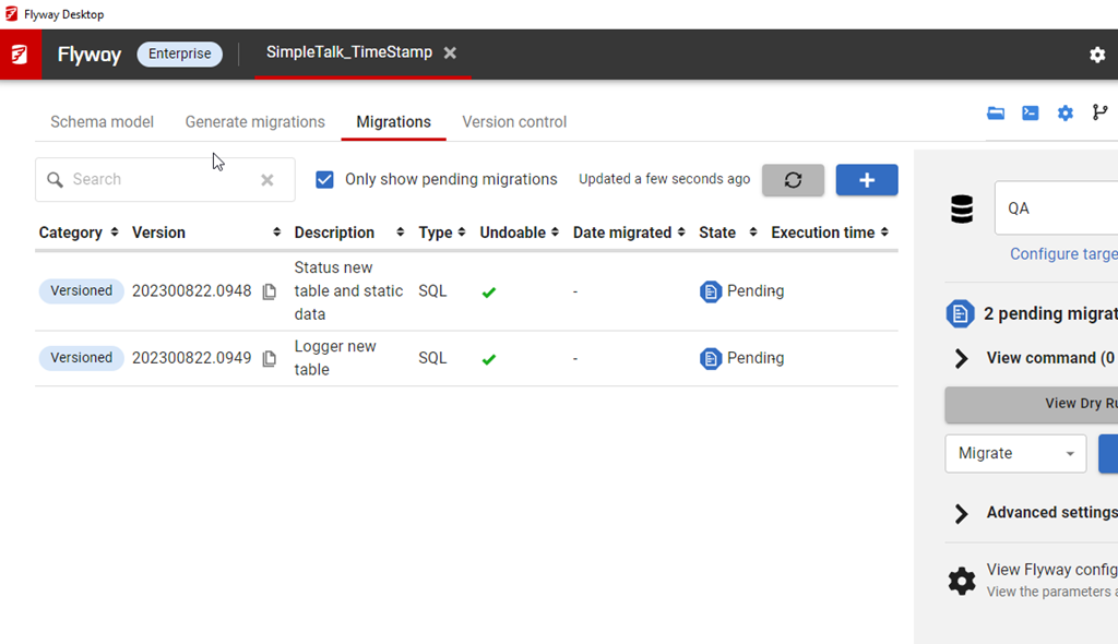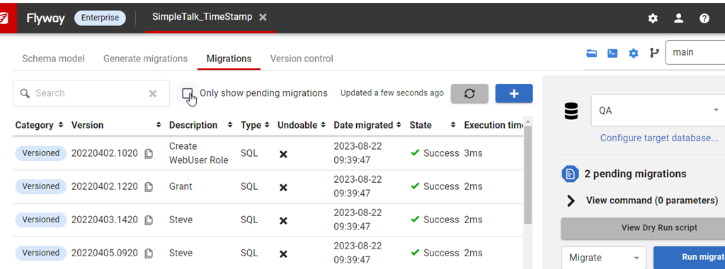 In Flyway Desktop, here is my view.