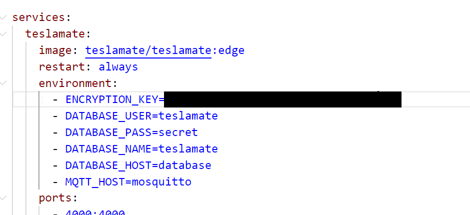 In my Docker Compose file, I decided to add the encryption key. In the old file, I didn’t have the encryption key, so I copied the environment variable from the docs and added this in my file.