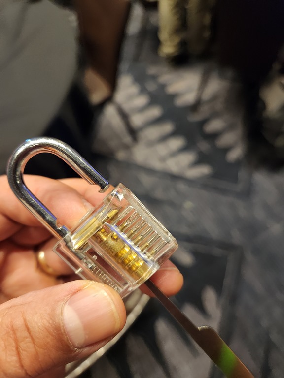 The guy got me to practice and I opened a lock in a few minutes. Cool and scary.