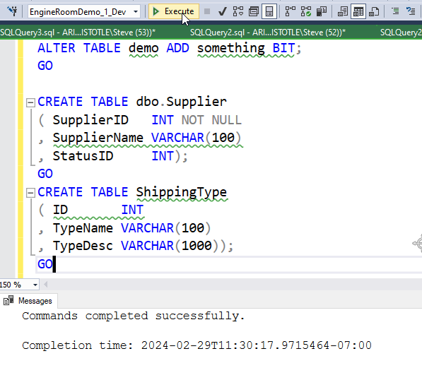 I’ve undone a change. Now I can commit these two tables, if that’s what I need, or I can also add back a better named column and refresh this if needed.