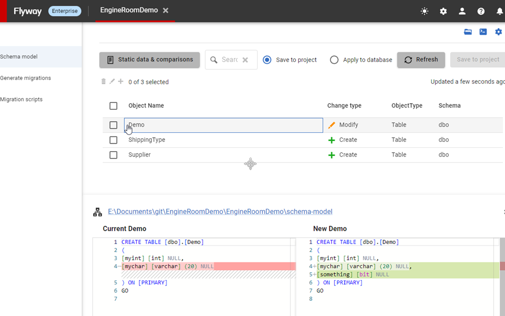 I test this (hopefully) and I come to Flyway Desktop, where I can see all my changes listed in the Schema Model tab.