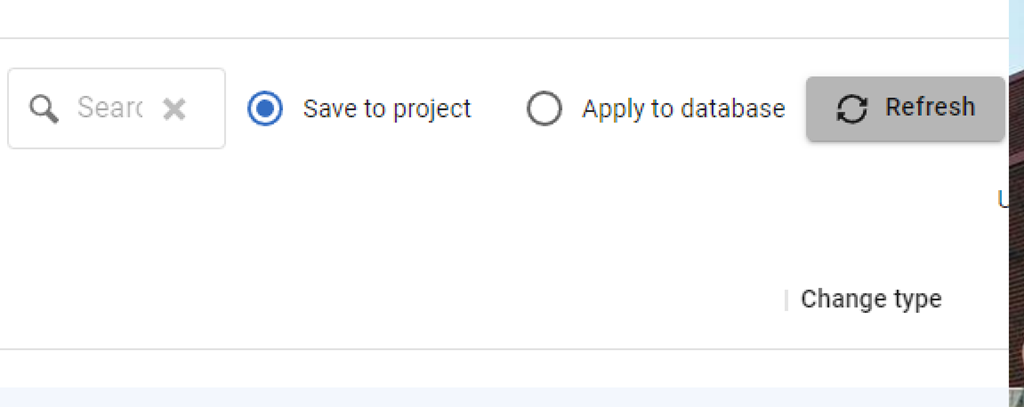 At the top, you see there is a Save to Project and Apply to Database set of radio buttons.