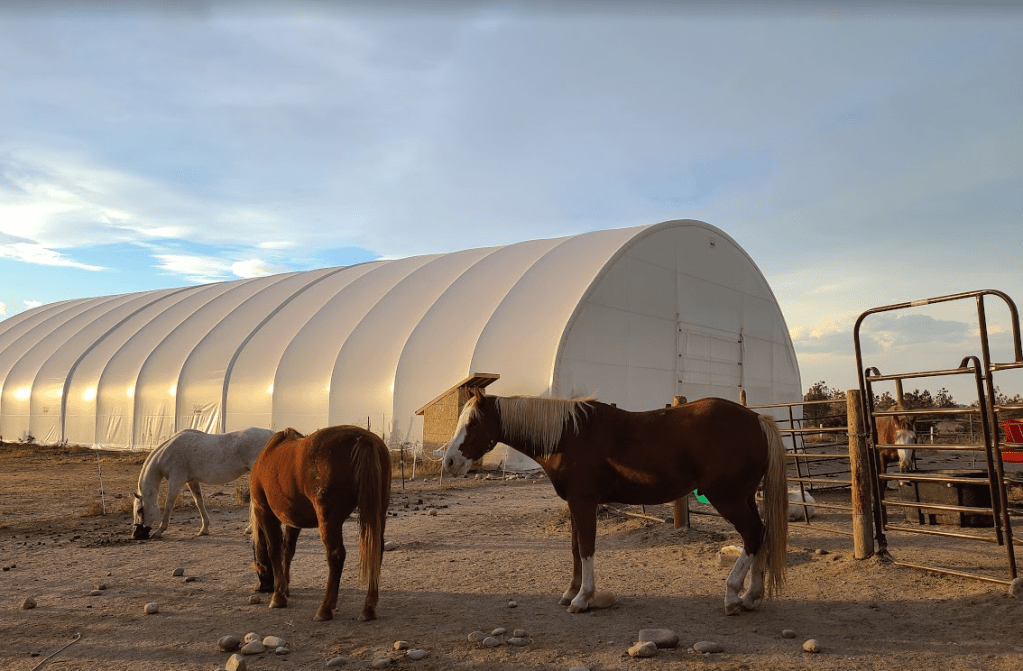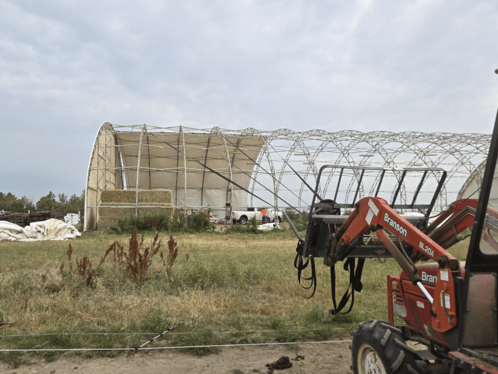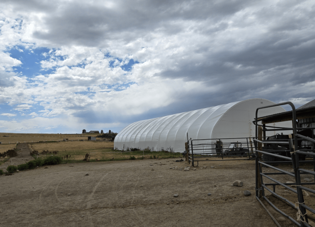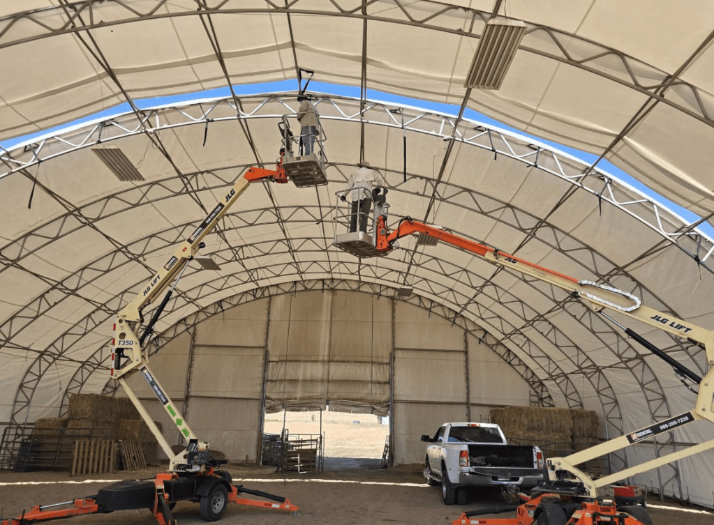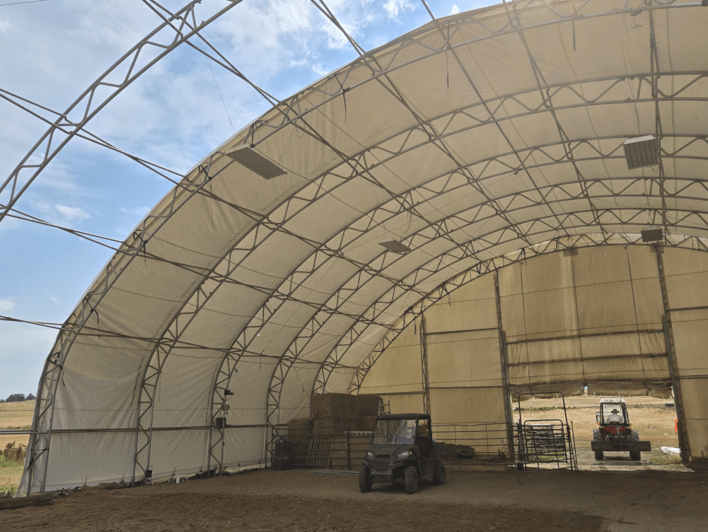 It’s been on the ranch since 2010, but a very heavy hailstorm damaged it almost two years ago. A number of small holes in the fabric let rain in, which has worsened over time. We worked through an insurance claim to get new fabric and some installation compensation, but decided to do some of the work ourselves since the install cost was high. We did pay for a vendor consultant to help for a week, but my wife, kids, and did all the work.