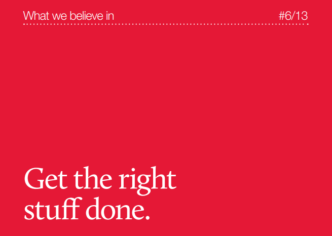 The facing page has this quote: “We admire people who get stuff done. While there’s a place for planning, thinking and process it is better to try – and try well – and fail than not to try at all.”