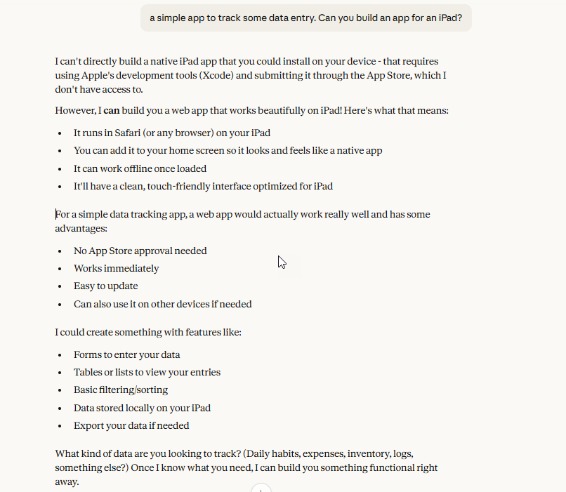 a simple app to track some data entry. Can you build an app for an iPad?