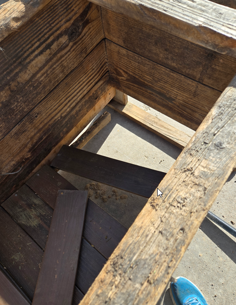 My daughter told me this happened Monday afternoon. This is one of our horse feeders, and as you can see, the bottom has fallen out.